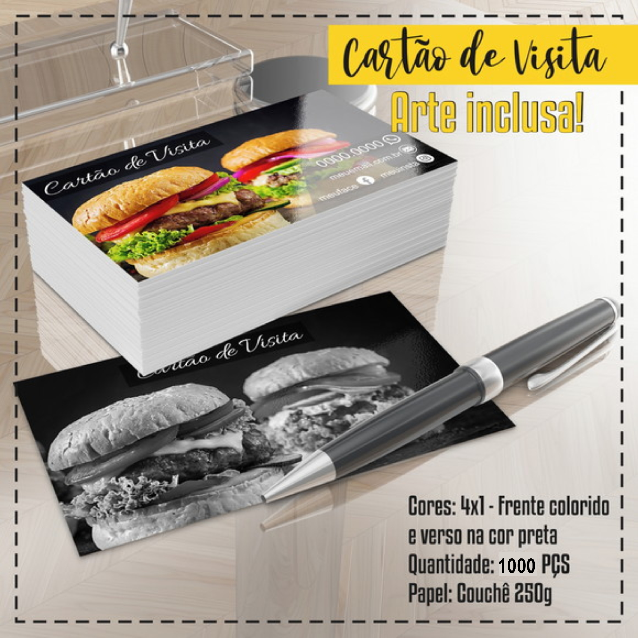 CARTÕES 4X1 1 LADO COLORIDO e ENVERNIZADO OUTRO LADO EM TONS DE PRETO E BRANCO
