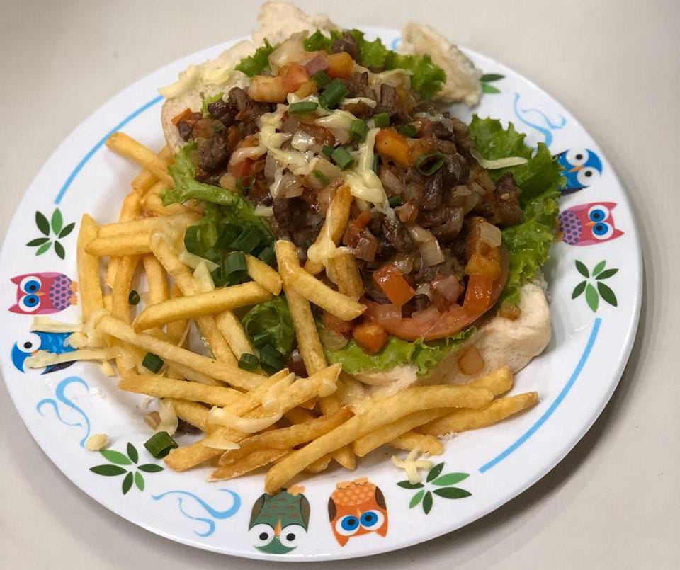 2 salsichas, purê, salada, batata palha, milho, frango com Catupiry e 250g de batata frita